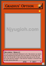 Special Summoned by selecting 1 face-up "Gradius" on your side of the
