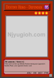 Destiny Hero - Defender DARK / Warrior / Level 4 / ATK 100 / DEF 2700 If this card is in face-up Defense Position during your opponent's Standby Phase, your opponent draws 1 card. ULTRA RARE |