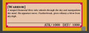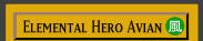 Elemental Hero Avian (original artwork) WIND / Warrior / Level 3 / ATK 1000 / DEF 1000 A winged Elemental Hero who wheels through the sky and manipulates the wind. His signature move, Featherbreak, gives villainy a blow from sky-high. COMMON |