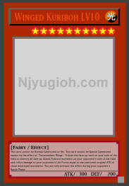 Winged Kuriboh LV10 LIGHT / Fairy / Level 10 / ATK 300 / DEF 200 This card cannot be Normal Summoned or Set. This card cannot be Special Summoned except by the effect of "Transcendent Wings". Tribute this face-up card on your side of the field to destroy all face-up Attack Position monsters on your opponent's side of the field and inflict damage to your opponent's Life Points equal to the combined original ATK of those destroyed monster(s). You can only activate this effect during your opponent's Battle Phase. ULTRA RARE |