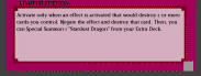 | Comments: | If it could be activated when 1 or more of your cards would be destroyed, then I'd certainly give it a higher rating but it Special Summons Stardust Dragon from your Extra Deck free of charge! |