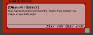 Golem Dragon EARTH / Dragon / Level 4 / ATK 200 / DEF 2000 Your opponent cannot select another Dragon-Type monster you control as an attack target. ULTRA RARE |