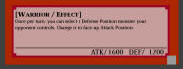 | Comments: | He basically converts into a Goblin Attack Force with his effect and he can't take face up Attack Position monsters so he won't likely gain much ATK at all. |