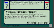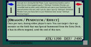 | Comments: | The Pendulum Text restrains the effect to protect Odd-Eyes Pendulum Monsters but there are a few to pick from, though the other effect isn't that great either and neither are its stats. |
