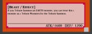 The Trojan Horse EARTH / Beast / Level 4 / ATK 1600 / DEF 1200 If you Tribute Summon an EARTH monster, you can treat this 1 monster as 2 Tribute Monsters for the Tribute Summon. COMMON |