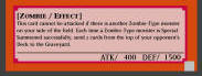 | Comments: | As they say, zombies don't die and this one does but he comes back if destroyed by a card effect. Not only does Kaiba use him but he's a necessity for getting out VG. |
