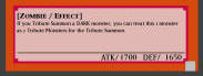 Double Coston DARK / Zombie / Level 4 / ATK 1700 / DEF 1650 If you Tribute Summon a DARK monster, you can treat this 1 monster as 2 Tribute Monsters for the Tribute Summon. COMMON |