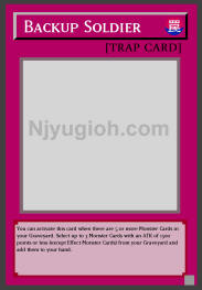 Backup Soldier Normal Trap You can activate this card when there are 5 or more Monster Cards in your Graveyard. Select up to 3 Monster Cards with an ATK of 1500 points or less (except Effect Monster Cards) from your Graveyard and add them to your hand. SUPER RARE |