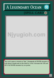 A Legendary Ocean Field Spell This card's name is treated as "Umi". Downgrade all WATER monsters in both player's hands and on the field by 1 Level. Increases the ATK and DEF of all WATER monsters by 200 points. SUPER RARE |