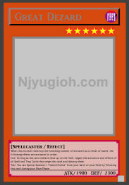 Great Dezard DARK / Spellcaster / Level 6 / ATK 1900 / DEF 2300 When this monster destroys the following number of monsters as a result of battle, the following effects are activated in order: One: As long as this card remains face-up on the field, negate the activation and effects of all Spell and Trap Cards that target this card and destroy them. Two: You can Special Summon 1 "Fushioh Richie" from your hand or your Deck by Tributing this card during your Main Phase. RARE |