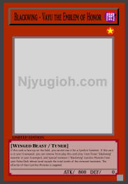 If this card is face-up on the field, you cannot use it for a Synchro Summon. If this card is in your Graveyard, you can remove from play this card plus 1 non-Tuner "Blackwing" monster in your Graveyard, and Special Summon 1 "Blackwing" Synchro Monster from your Extra Deck whose Level equals the total Levels of the removed monsters. The effect(s) of that Synchro Monster is negated.