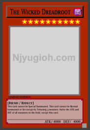 This card cannot be Special Summoned. This card cannot be Normal Summoned or Set except by Tributing 3 monsters. Your opponent cannot activate Spell or Trap Cards until the end of their 2nd turn after this card is Normal Summoned. The ATK and DEF of this card are each 100 points higher than the highest face-up monster's ATK on the field (except "The Wicked Avatar").