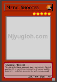 Metal Shooter LIGHT / Machine / Level 5 / ATK 800 / DEF 800 When this card is Normal Summoned, place 2 counters on it. This card gains 800 ATK for each of these counters on it. If this card would be destroyed by a card effect, remove 1 of this card's counters instead. SUPER RARE |